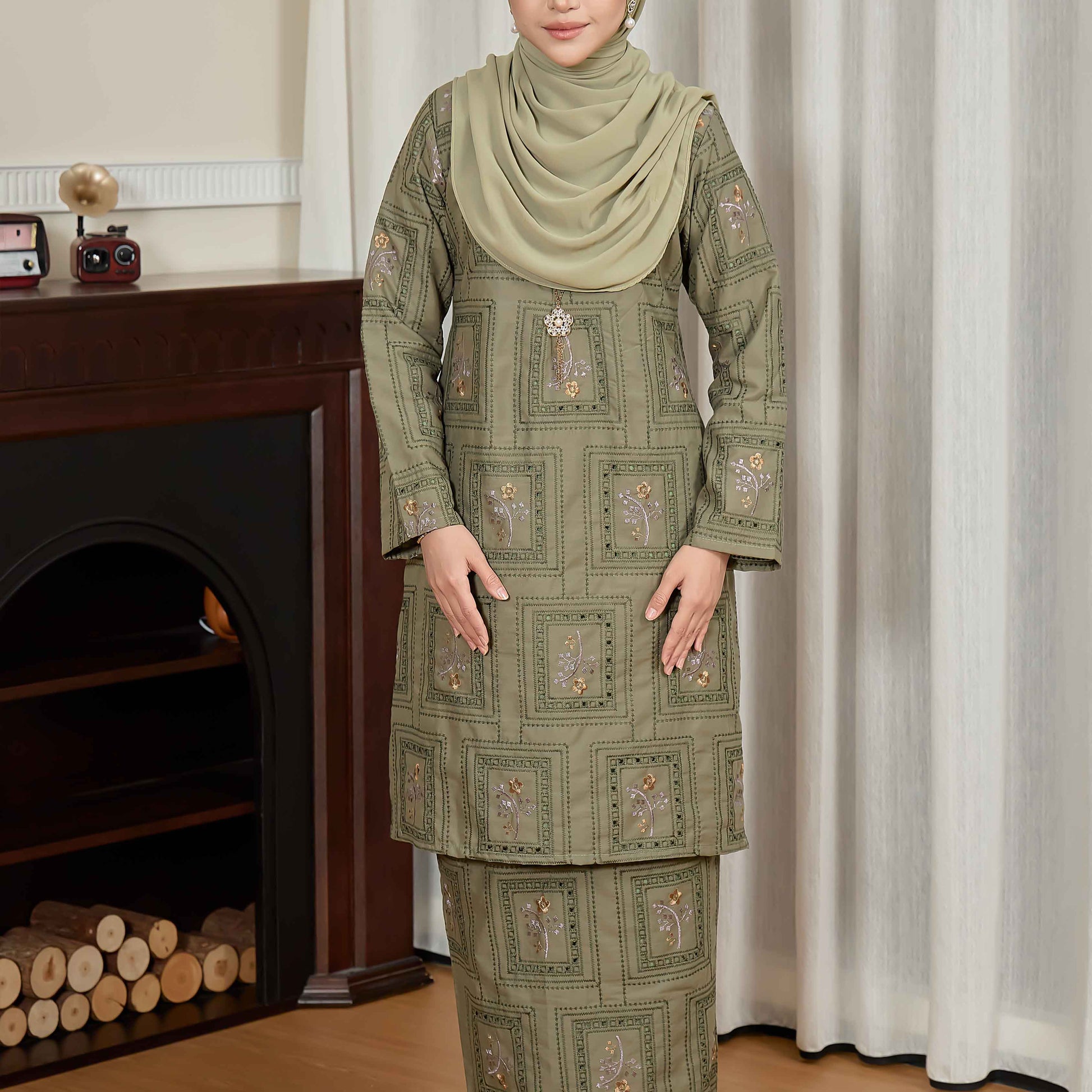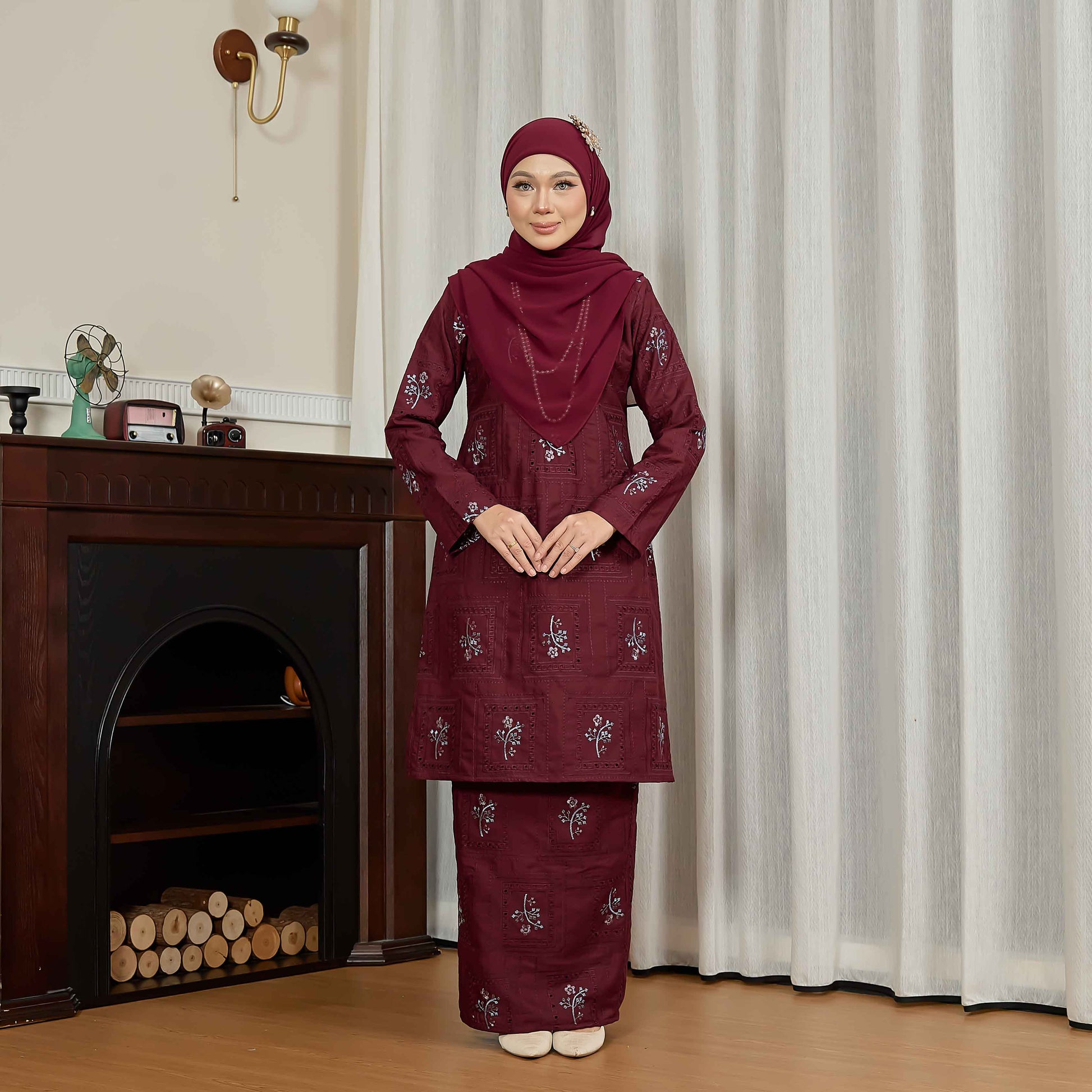 CLARA RIZQA - ALORA baju kurung cantik moden material Cotton Embroidery with lining