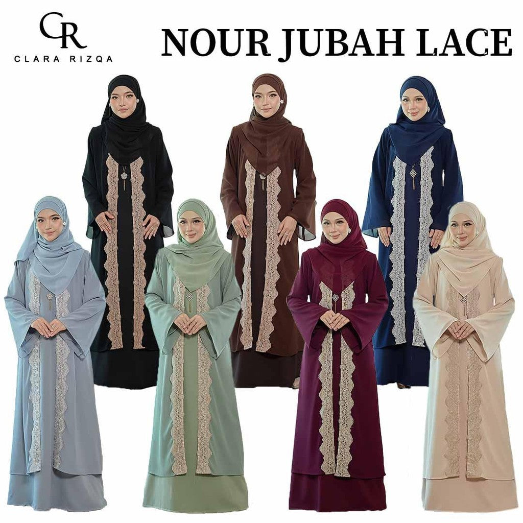 CLARA RIZQA - NOUR Jubah Lace Muslimah + Shawl Material Chiffon + Lace + Chiffon